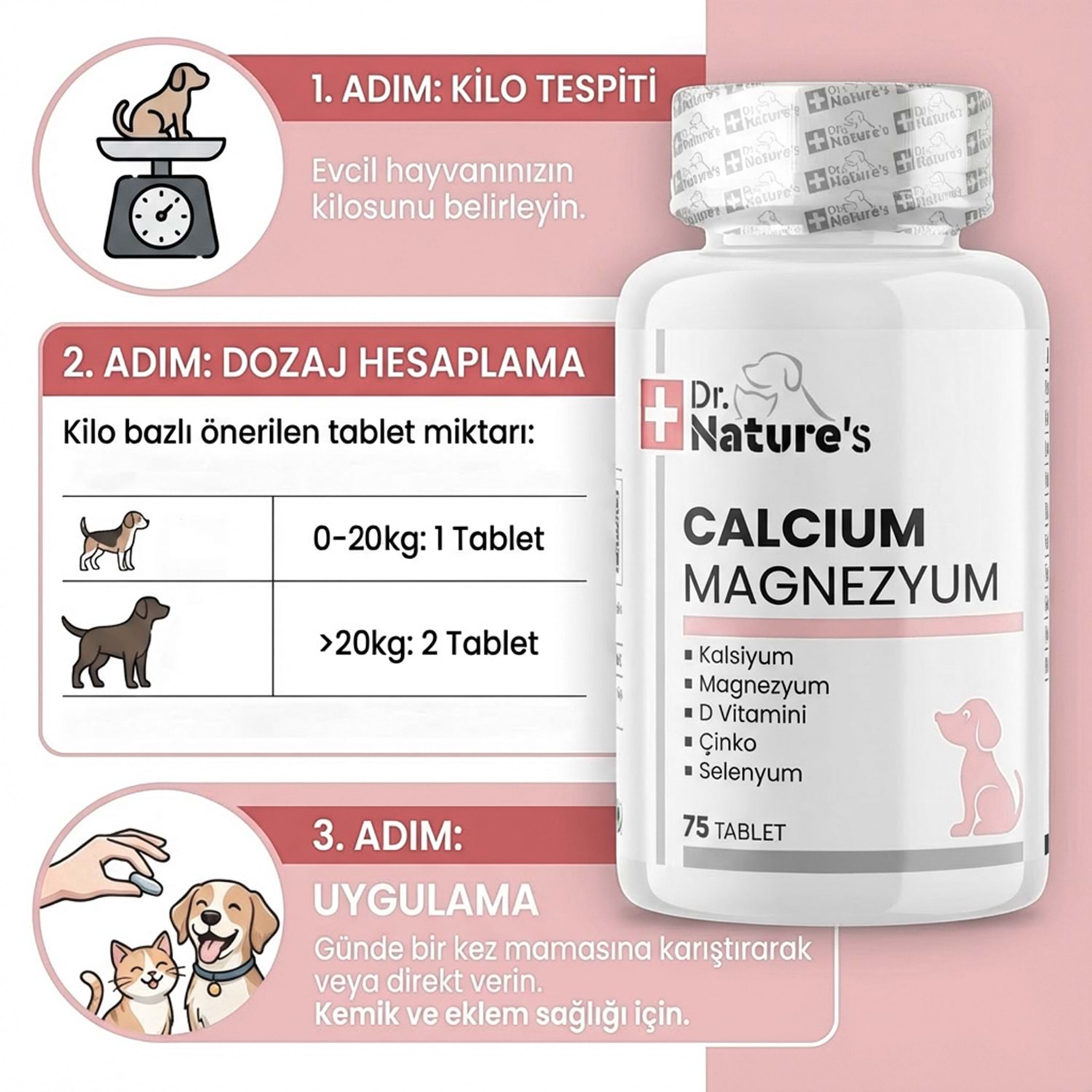Köpek Kalsiyum 75 Tablet – Kemik ve Diş Gelişimi Destekleyici D3 & Magnezyum